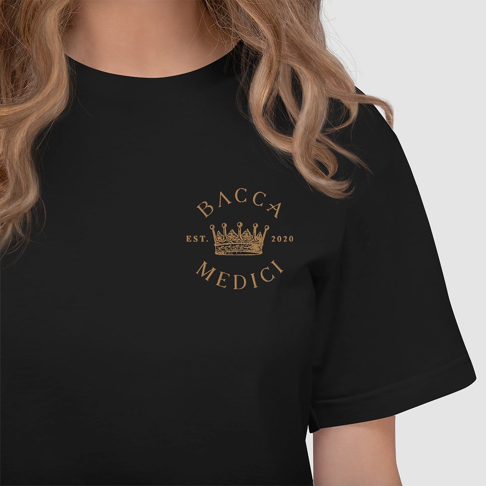 means Fruits of Nobility. Bacca is a berry or simple fruit. The Medici were a merchant family that rose to prominence in 15th century Florence becoming members of nobility and royalty. Be noble.